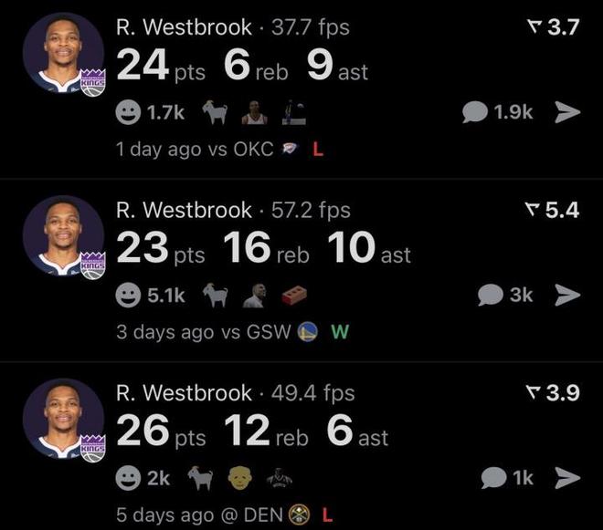 首发的时候威少场均24.3分11.3篮板8.3助攻,而且命中率高达59%,那为什么三场首发打得这么好,又被国王队踢到了替补席,这真是一个未解之谜,打得不好让球员替补很正常,打得好还让他替补,威少这种级别的超级巨星受这种委屈真是让人很不值。而且确实让人不理解,国王队的排兵布阵究竟是什么意思?为什么打得越好的球员越让他替补呢?唯一能够解释的只有两个原因。